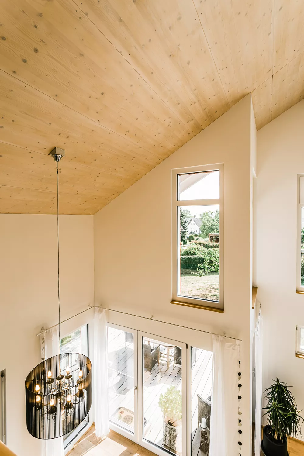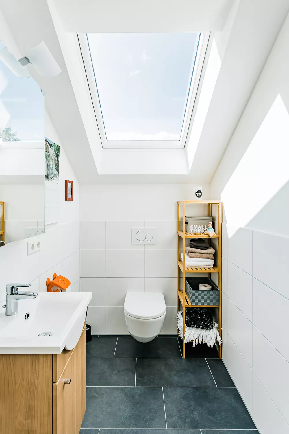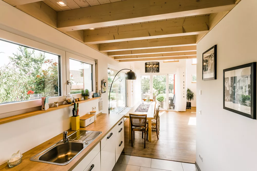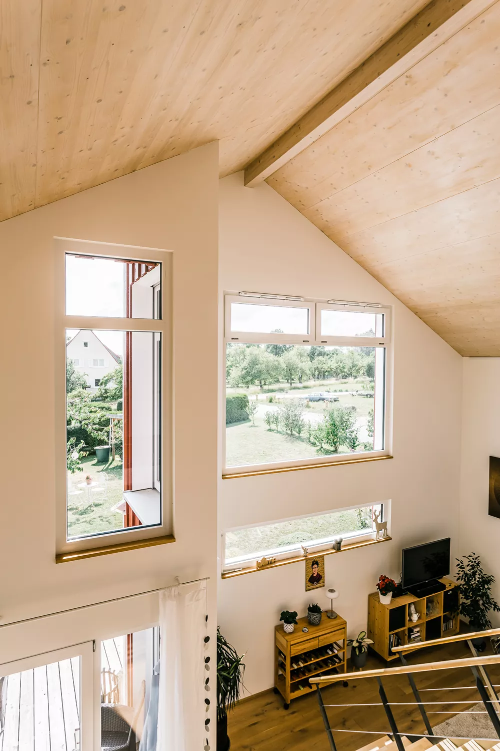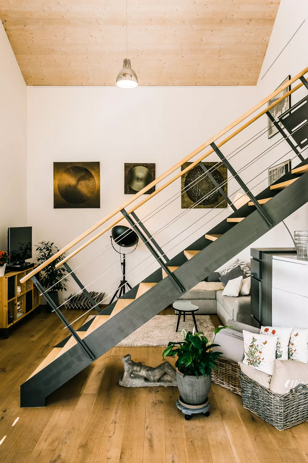 Dieses besondere Holzhaus könnte auch auf einem Felsen in den schwedischen Schären stehen. Das für zwei bis drei Personen optimierte Haus wurde auf ein außergewöhnliches Restgrundstück geplant und sehr individuell an die Wünsche der Bauherrschaft angepasst. Ein Highlight der Ausstattung ist sicherlich der zentrale Ofen, der sowohl mit Pellets als auch Stückholz befeuert werden kann und die gesamte Wärmeversorgung des Hauses übernimmt.
