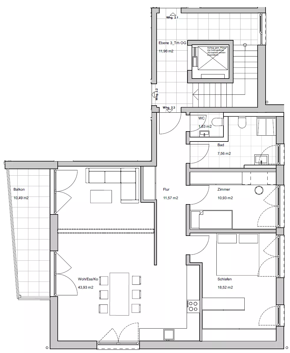 Das Massivhaus in Ziegelbauweise umfasst neun Wohneinheiten, die auf drei Geschosse verteilt sind. Jedes Geschoss beherbergt dabei drei Wohnungen in unterschiedlichen Größen. Die letzte verfügbare Wohnung befindet sich im Obergeschoss und ist bequem mit dem Aufzug erreichbar. Sie verfügt über großzügige 3,5 Zimmer, wobei sich durch das Ergänzen einer Wand optional ein viertes Zimmer realisieren lässt. Zudem bietet die Wohnung ein separates WC sowie ein geräumiges Schlafzimmer mit ausreichend Platz für einen Ankleidebereich. Ein sonniger Balkon in Südwestausrichtung lädt zum Entspannen ein.