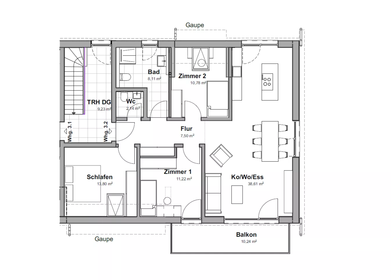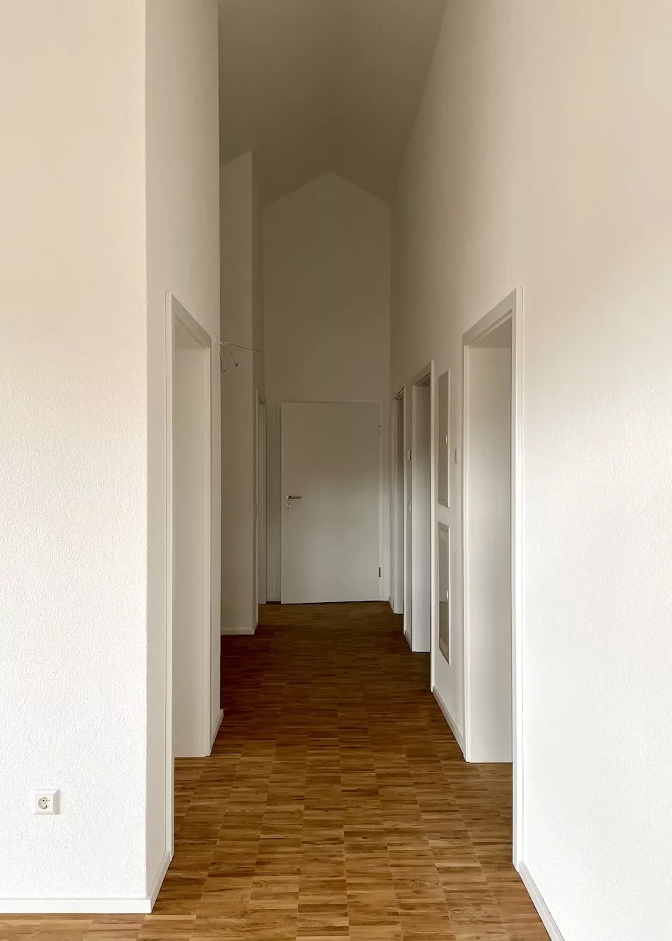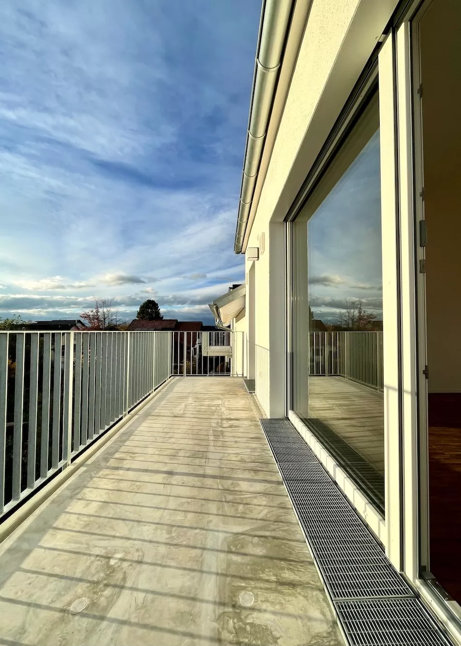 Freuen Sie sich auf eine charmante Dachgeschosswohnung mit 4,5 Zimmern auf rund 95 m². Die Wohnung beeindruckt durch ihre großzügige und helle Raumwirkung – ein echtes Highlight sind die hohen Decken, die zusammen mit den großen Fensterflächen ein besonderes Wohngefühl schaffen. Der offen gestaltete Koch-, Ess- und Wohnbereich bildet das Herzstück der Wohnung. Drei gut geschnittene Schlafzimmer bieten vielfältige Nutzungsmöglichkeiten – ob als Elternschlafzimmer, Kinderzimmer oder Homeoffice. Das moderne Badezimmer überzeugt mit einer bodentiefen Dusche, zusätzlich steht Ihnen ein separates Gäste WC zur Verfügung. Ein besonderes Detail ist der sonnige Balkon mit Südwest-Ausrichtung, den Sie sowohl vom Wohnbereich als auch von einem der Schlafzimmer aus betreten können.