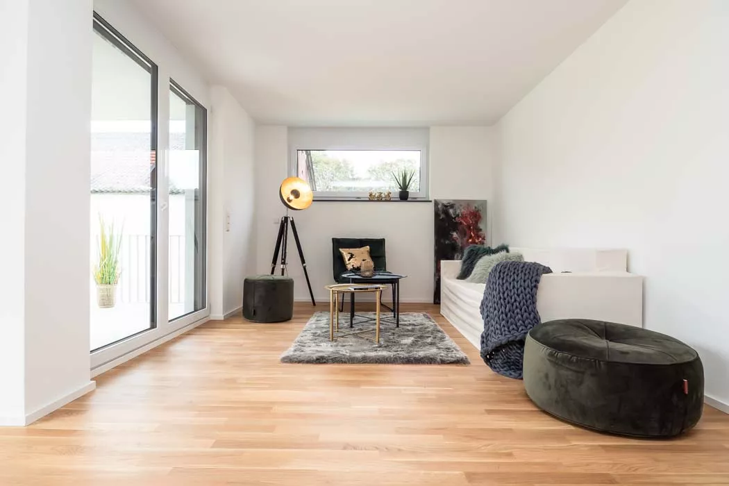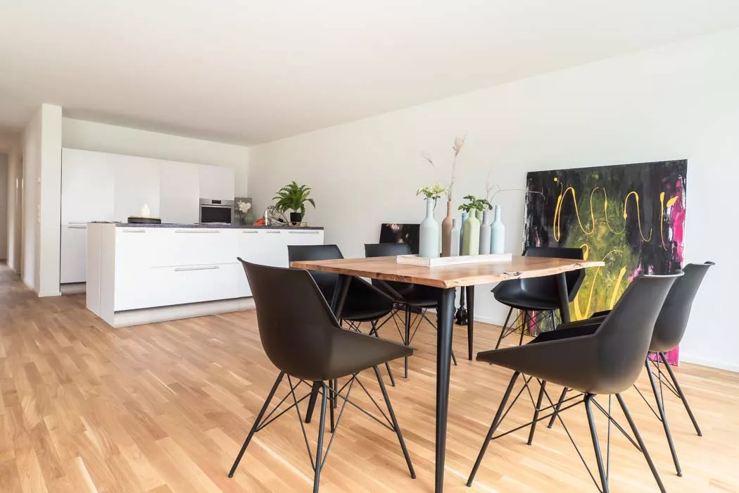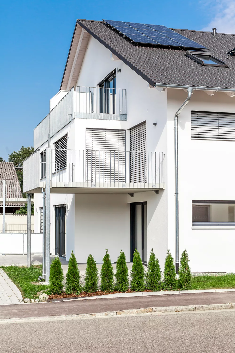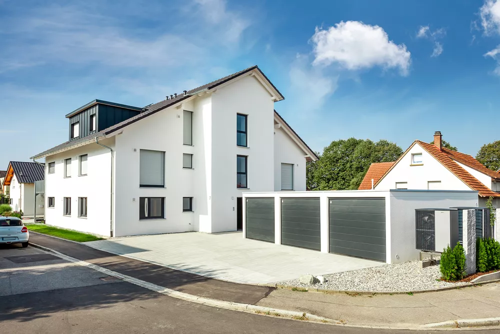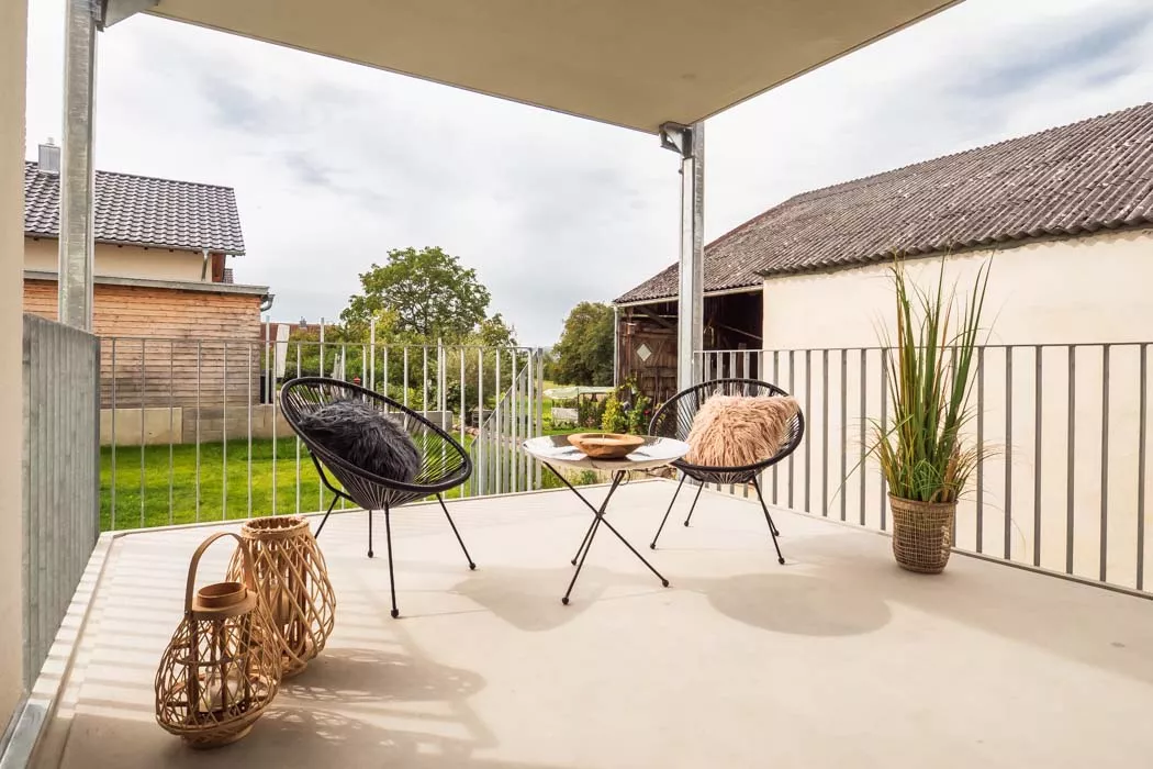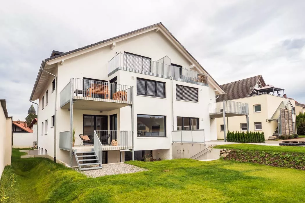 Selbst als hier noch ein älteres, landwirtschaftliches Gebäude stand, war das große Potenzial des Grundstücks erkennbar. Heute bietet das moderne Mehrfamilienhaus bequem Platz für 7 Familien inkl. Gartenzugängen, Balkonen, Terrassen und Parkplätzen. Trotz der zahlreichen Wohnungen bleibt genügend Raum für jeden Bewohner.