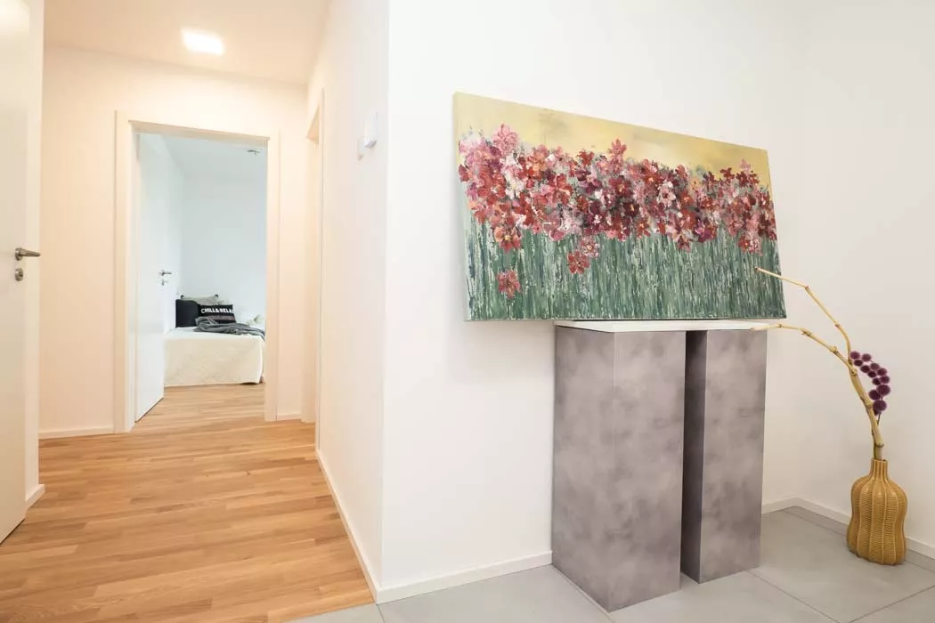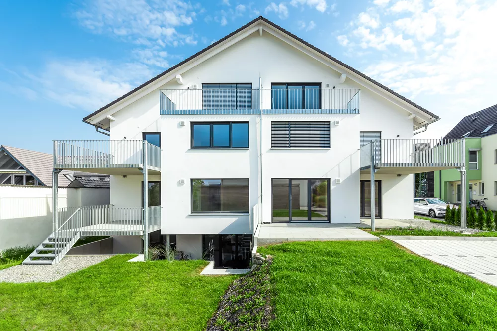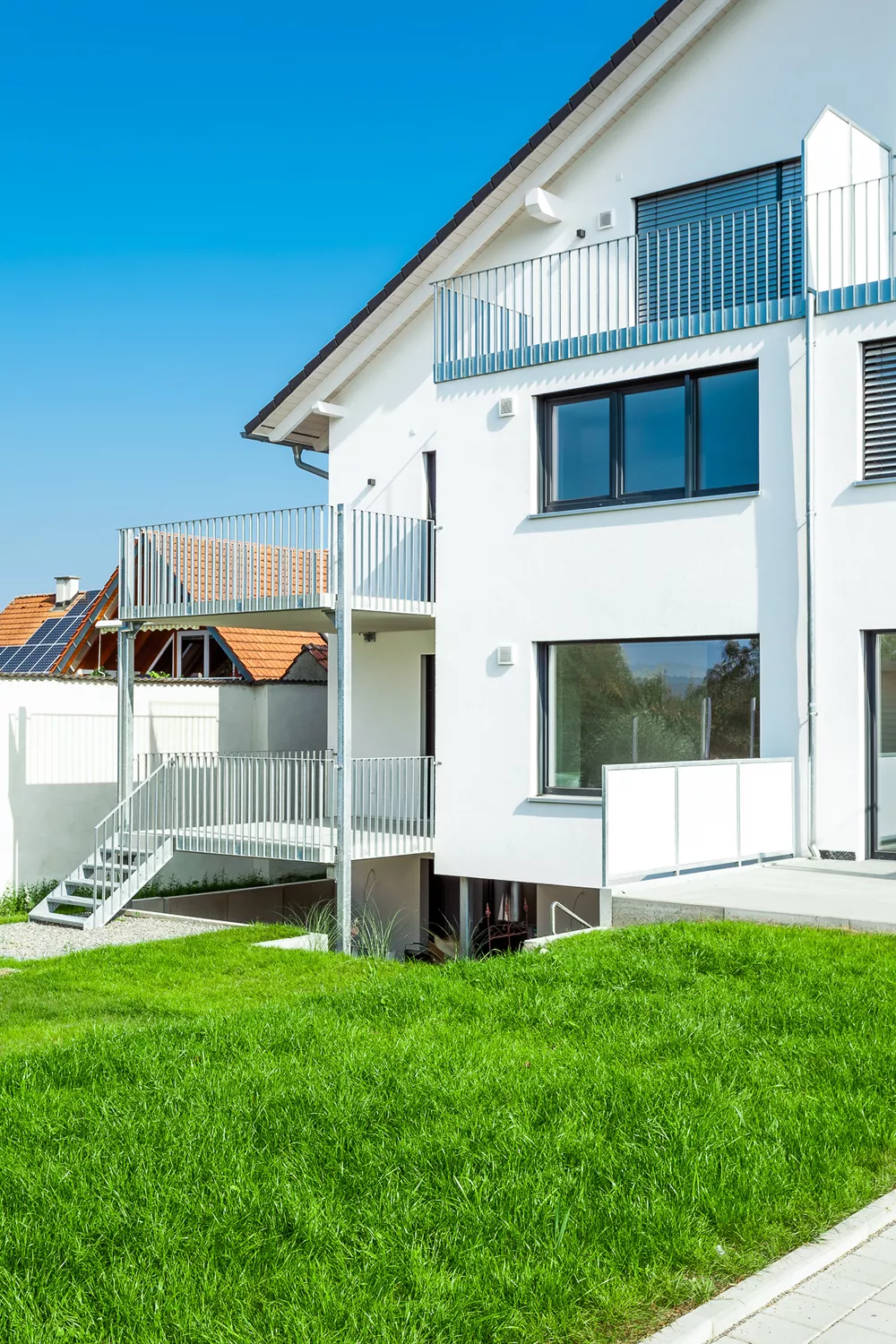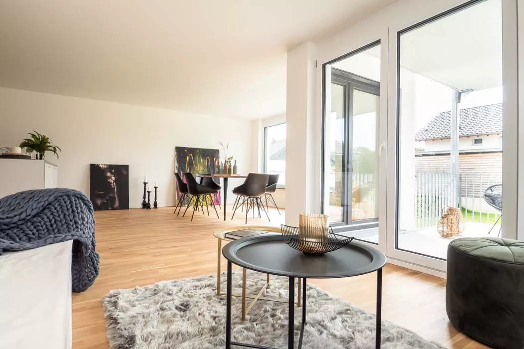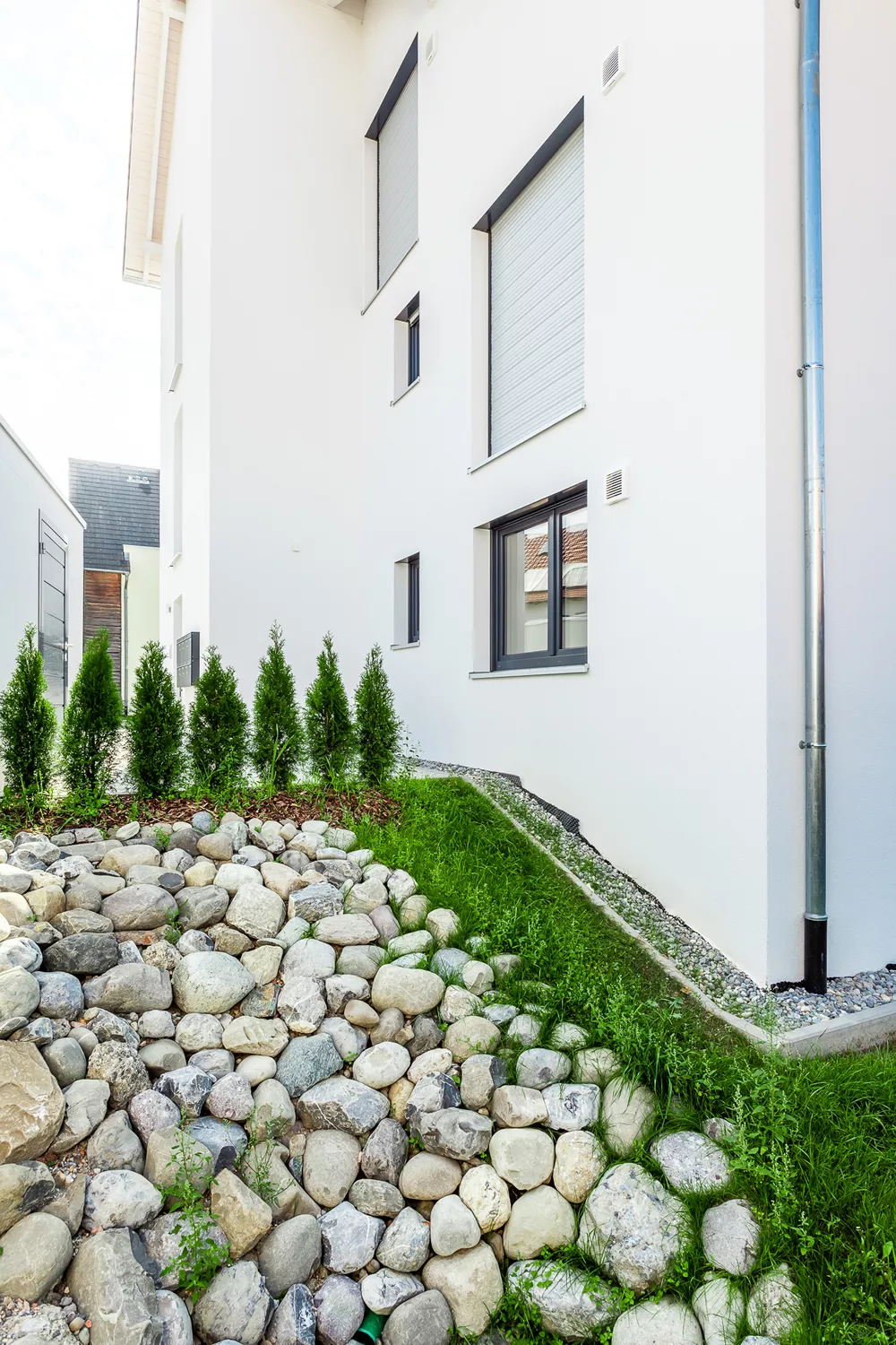 Selbst als hier noch ein älteres, landwirtschaftliches Gebäude stand, war das große Potenzial des Grundstücks erkennbar. Heute bietet das moderne Mehrfamilienhaus bequem Platz für 7 Familien inkl. Gartenzugängen, Balkonen, Terrassen und Parkplätzen. Trotz der zahlreichen Wohnungen bleibt genügend Raum für jeden Bewohner.