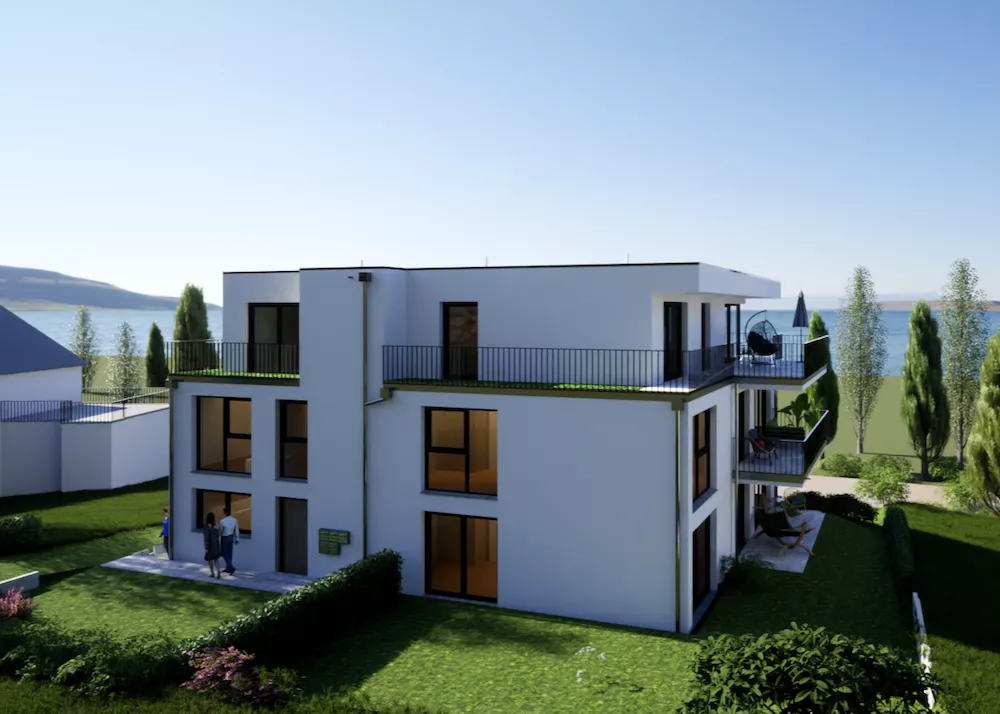In einem hochwertigen Neubauprojekt steht diese exklusive Wohnung zum Verkauf. Das moderne Mehrfamilienhaus mit fünf Wohneinheiten wird in Ziegelbauweise errichtet und liegt in unmittelbarer Seenähe – eine einmalige Gelegenheit.