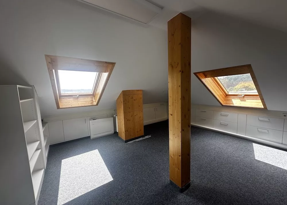 Dieses stilvolle Büro befindet sich im Dachgeschoss eines gepflegten Gebäudes und bietet durch seine erhöhte Lage einen beeindruckenden Weitblick über die Umgebung. Das gesamte Gebäude wurde im Jahr 2017 umfassend modernisiert und befindet sich in einem sehr gepflegten und modernen Zustand.