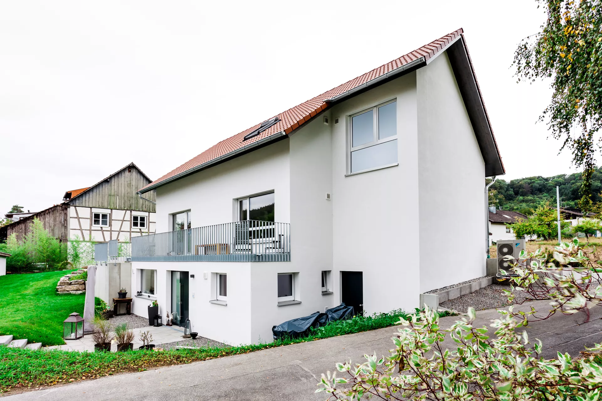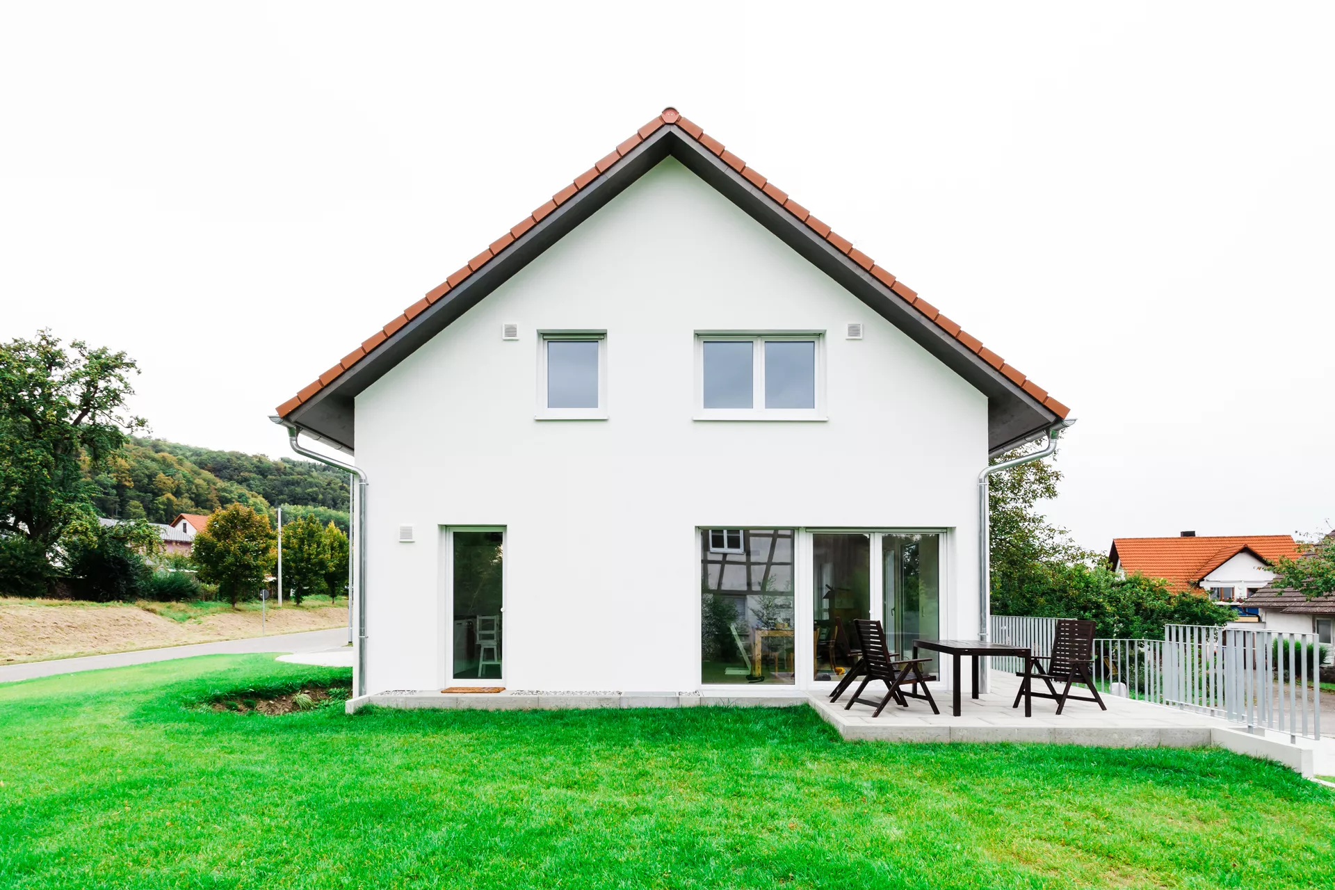 Für drei Generationen einer Familie durften wir dieses Zuhause unter einem gemeinsamen Dach realisieren. Um jeder Generation ausreichend Freiraum zu geben, wurden der Grundriss und die Aufteilung sehr sorgfältig auf das Grundstück abgestimmt. Heute leben die Großeltern ungestört in der Einliegerwohnung, während die Kinder und Enkel in der Hauptwohneinheit viel Platz und den schönen, großen Garten genießen. Das Effizienzhaus wurde in nur 6 Monaten, und damit genau im eng gesteckten Zeitplan errichtet. Das Ergebnis spricht für sich – mit vielen durchdachten Details und einem großzügigen Gesamteindruck.